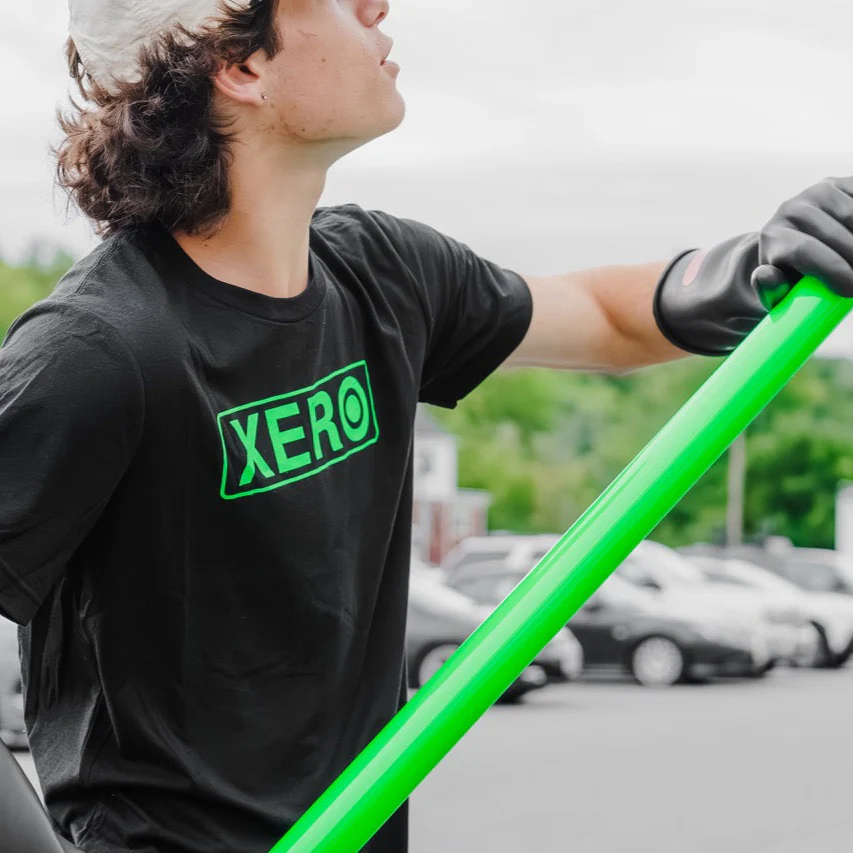 - This sleek all-black tee has a stand-out XERO Green logo.